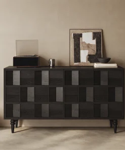Modern Black Wooden Sideboard Cabinet With 3D Geometric Drawer Design