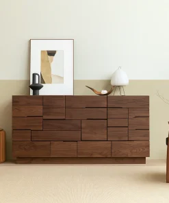 Modern Wooden Sideboard Cabinet With Geometric Drawer Design