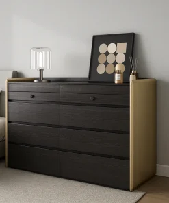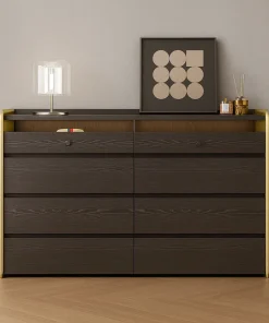 Crafted in a simple casual style, this wooden jewelry armoire provides generous storage with a clean and modern appearance. Its rectangular shape and smooth wood finish make it a versatile addition to bedroom interiors. The armoire includes several drawers and interior compartments designed to organize necklaces, rings, bracelets, and small accessories. A lockable feature adds security, while the flat surface can also be used for decorative display items.
