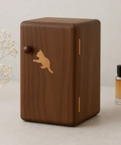Crafted with a modern and contemporary design, this wooden jewelry armoire adds both functionality and charm to bedroom storage. Its rounded edges and smooth finish create a refined look, while the decorative cat-shaped detail on the door adds a playful accent. Inside, the cabinet includes compartment drawers to organize rings, necklaces, bracelets, and other accessories. The compact structure fits neatly on a tabletop, dresser, or vanity, making it a versatile choice for daily use.