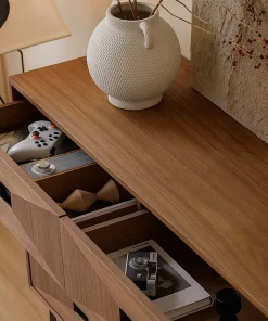 Modern Wooden Sideboard Cabinet With Geometric Drawer Design