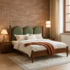 With a modern silhouette, this wooden poster bed blends natural wood construction with upholstered details for a balanced and inviting design. Its clean lines and subtle curves make it a versatile choice for both contemporary and transitional interiors. The frame is built from sturdy natural wood, complemented by a soft upholstered headboard that enhances comfort and adds a refined touch. Elevated on tapered legs, the bed maintains a sleek and grounded presence in the room.
