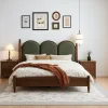With a modern silhouette, this wooden poster bed blends natural wood construction with upholstered details for a balanced and inviting design. Its clean lines and subtle curves make it a versatile choice for both contemporary and transitional interiors. The frame is built from sturdy natural wood, complemented by a soft upholstered headboard that enhances comfort and adds a refined touch. Elevated on tapered legs, the bed maintains a sleek and grounded presence in the room.