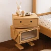 Fun and functional wooden nightstand for kids, featuring a smiley face drawer and lower cabinet with glass panel.