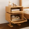 This playful nightstand is crafted from natural wood, designed with a smiley face on the top drawer to bring charm and joy to any child’s bedroom. The lower cabinet features a textured glass door with a golden handle, offering stylish enclosed storage. Sturdy wooden legs and side arms add stability and a unique character.