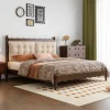 This traditional wooden platform bed features a decorative upholstered headboard and sturdy frame, offering both comfort and style for the bedroom.